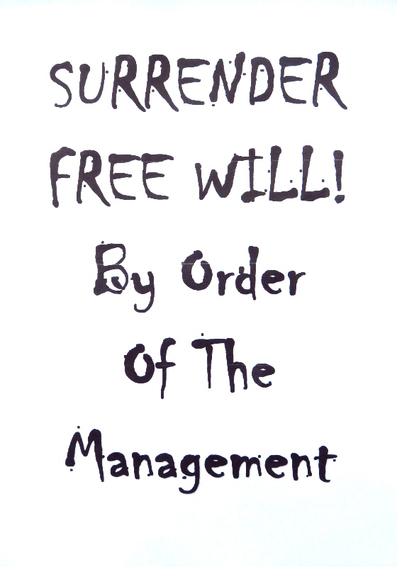Some establishments violate my psyche with signs demanding I comply with or refrain from particular behaviour “By Order of the Management”. My instinct is to do just the opposite, but unless I can do so without fear of detection (I am still a scared little boy on the inside) I will probably just slink out of the door wishing I’d been brave enough to “stick it to the man” by, I don’t know, leaving a poo under the table or something.